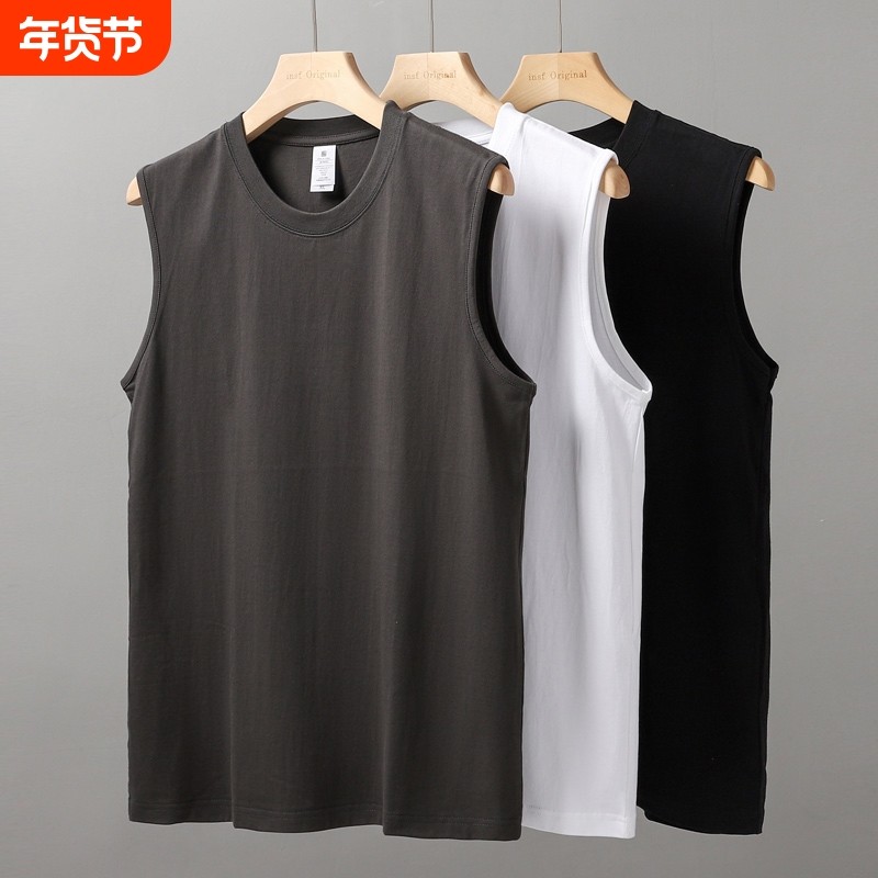 纯棉运动背心男士夏季ins白色宽松无袖坎肩健身短袖t恤男黑色日系