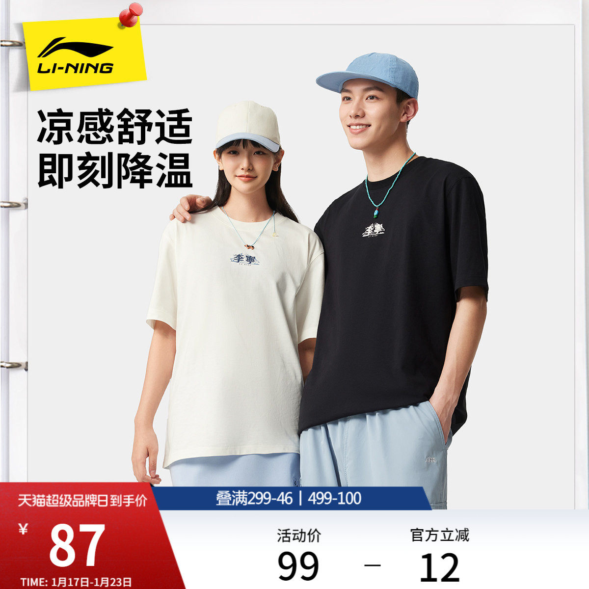 李宁短袖男士官方夏季半袖简约盐系情侣装黑色体恤纯棉运动T恤女
