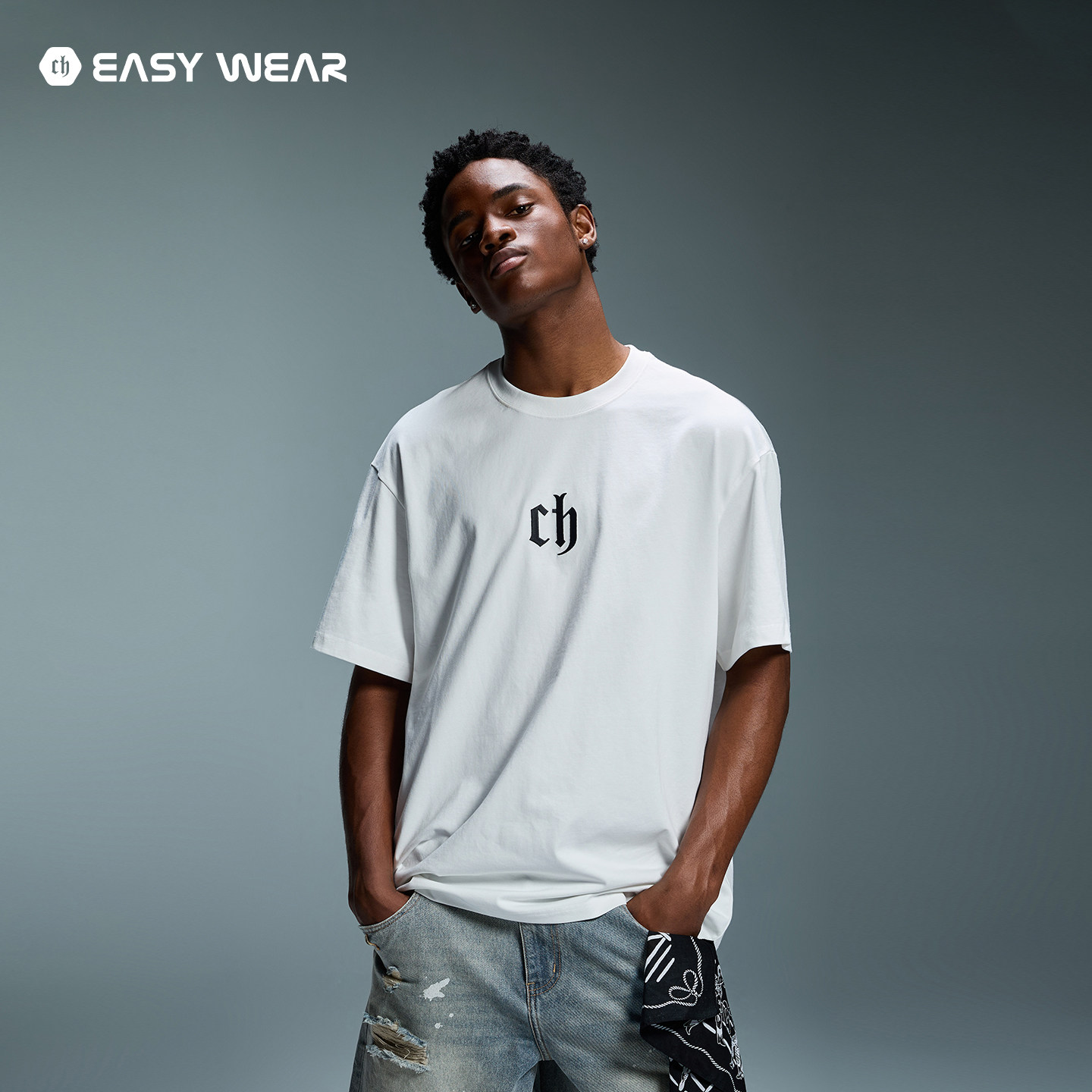 CH丨字母印花黑色短袖t恤男潮牌宽松夏季男生上衣美式情侣装半袖