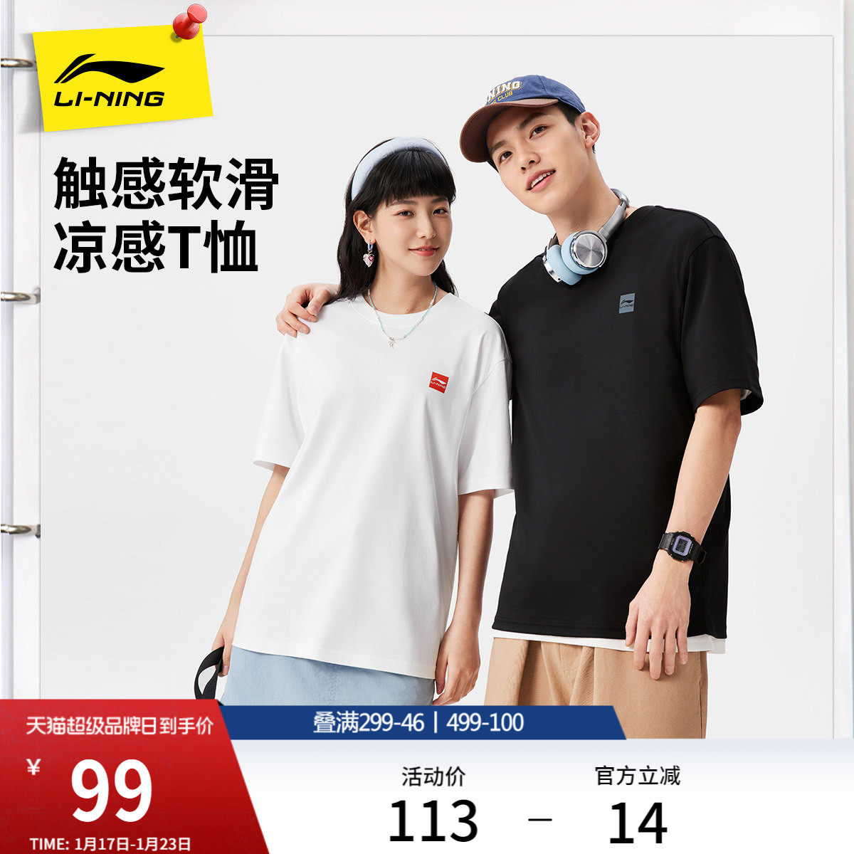 李宁短袖男士夏季官方半袖简约情侣装黑色体恤纯棉白色运动T恤女