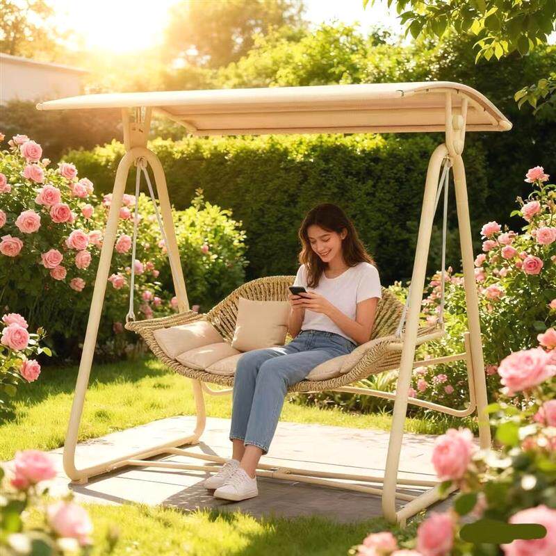 户外庭院摇椅网红室内秋千室外吊床吊椅小院阳台铁艺花园双人家用