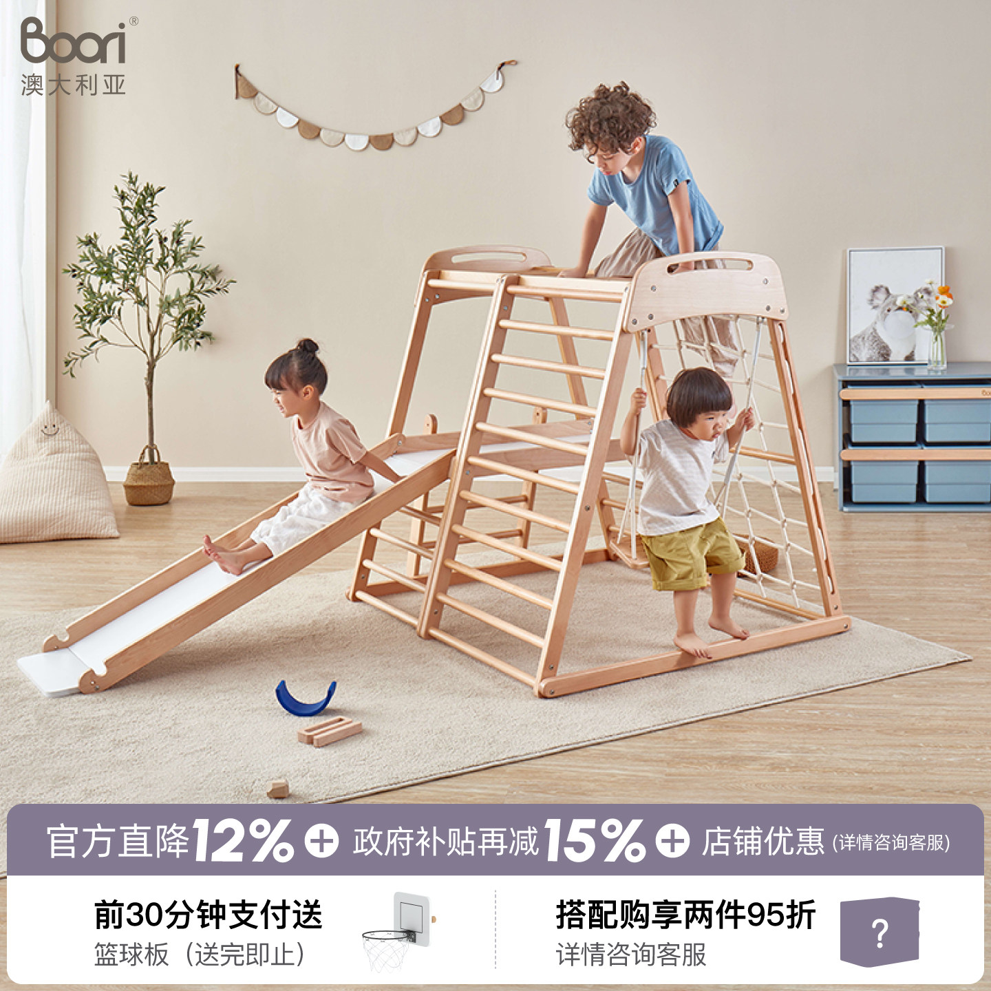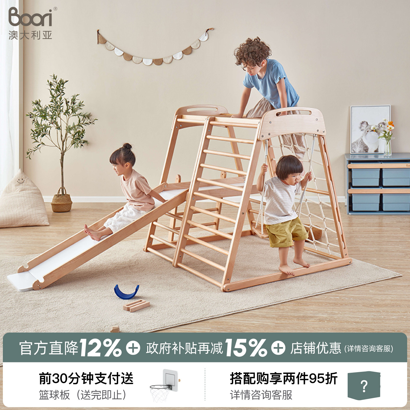 Boori进口实木攀爬架儿童滑滑梯家用室内秋千攀岩组合家庭游乐园