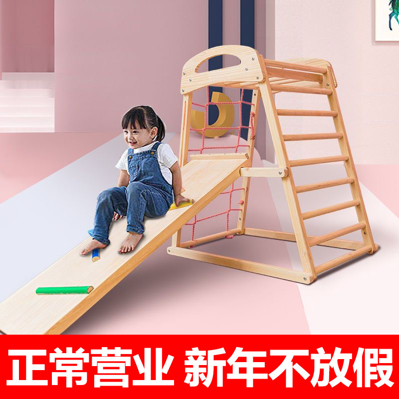 儿童木质攀爬架室内秋千攀岩组合感统训练床边彩虹滑梯木制玩具架