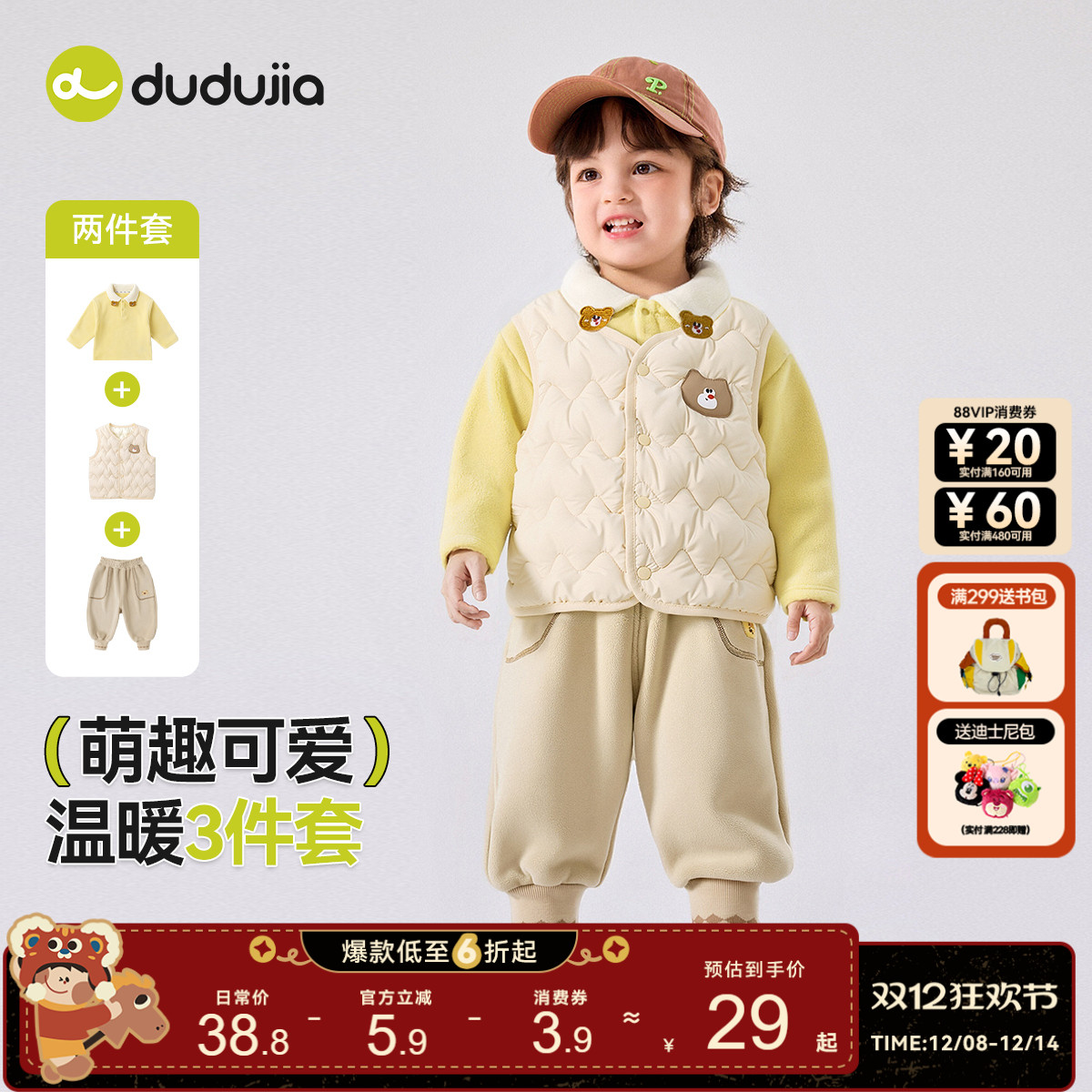 【烈儿宝贝直播间】【顾奈】儿童保暖上衣三层夹棉裤外套马甲套装
