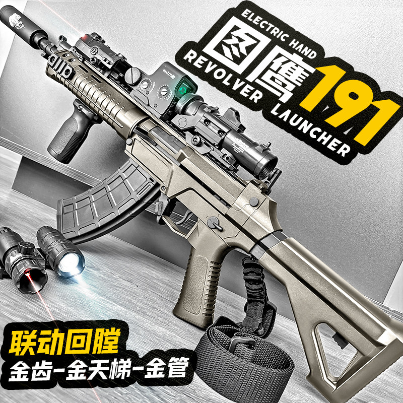 图鹰191电动连发玩具枪金齿男孩冲锋CS模型儿童wargame下场发射器