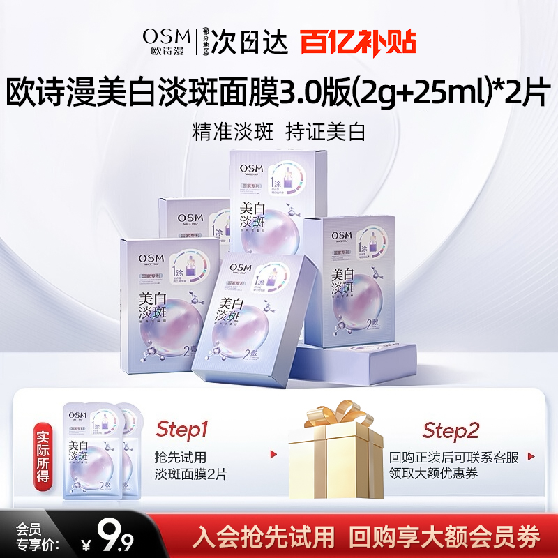 欧诗漫美白淡斑面膜女补水保湿提亮肤色试用旅行装官方旗舰店正品