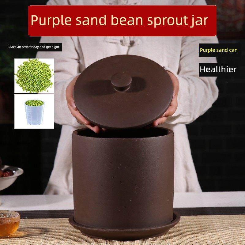 纯天然新品带提手款紫砂豆芽罐豆芽机半自动发芽机发菜苗豆苗大号