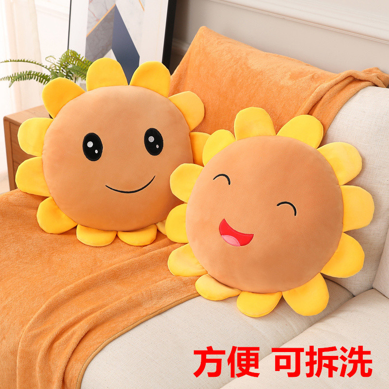 吐司太阳花抱枕被子珊瑚毯子两用靠枕办公室午睡枕头可拆洗车载用