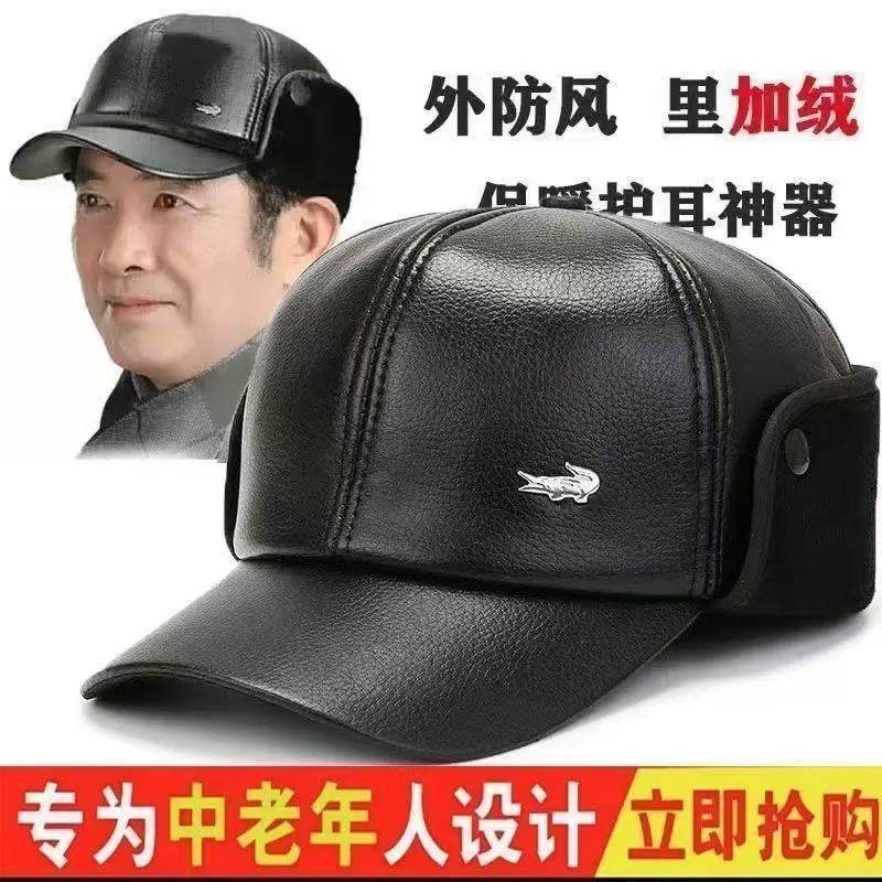冬季老人帽子皮帽棒球帽子男士防风保暖中老年护耳爸爸爷爷鸭舌帽