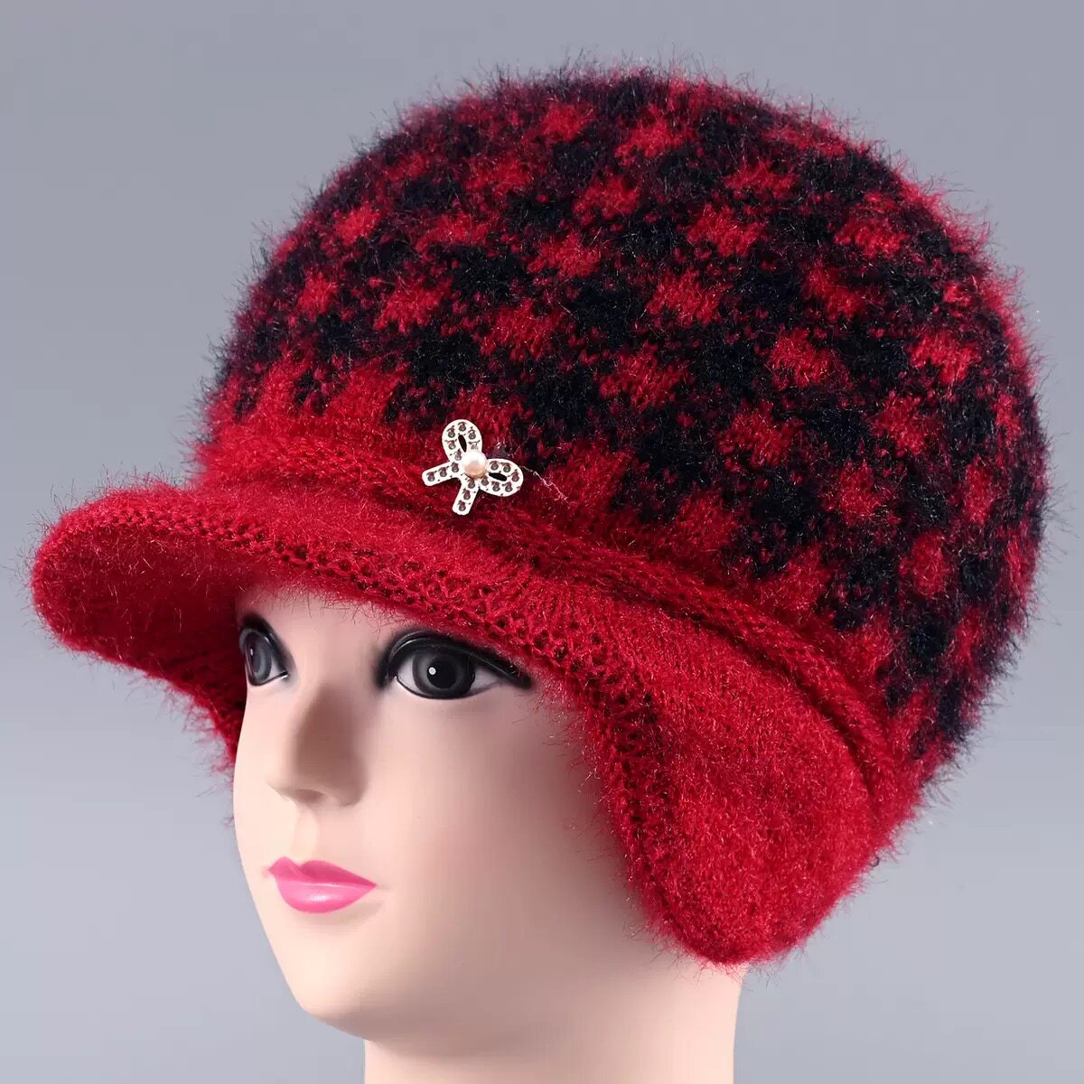 中年妈妈帽子女冬季兔毛保暖毛线帽老年人奶奶老人老太太秋冬棉帽