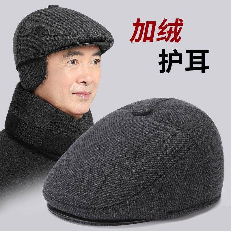 鸭舌帽子男士秋冬季老人帽爷爷贝雷帽中老年人加绒保暖爸爸前进帽