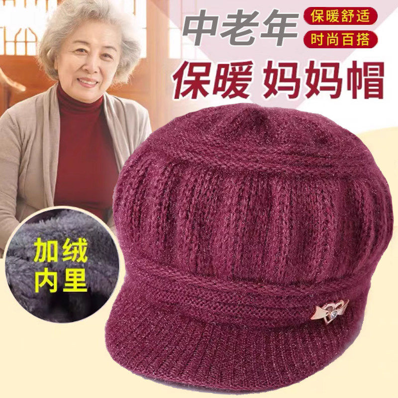 中年妈妈帽子女冬季毛绒保暖毛线帽老年人奶奶老人老太太秋冬棉帽