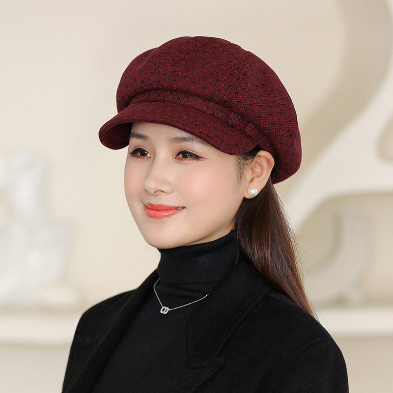 秋冬季老人帽子女奶奶红色中老年贝雷帽妈妈鸭舌帽保暖加厚八角帽