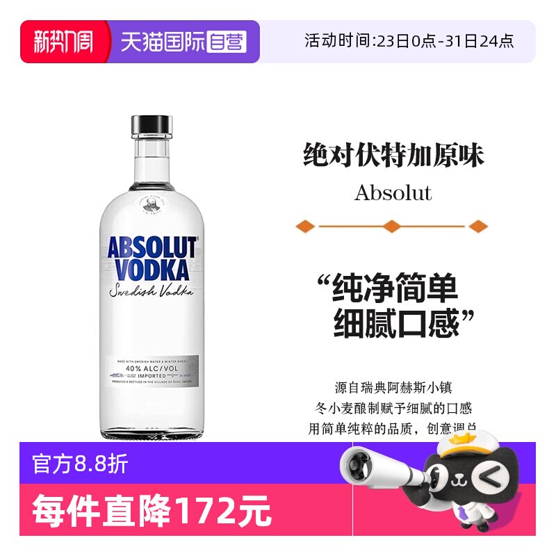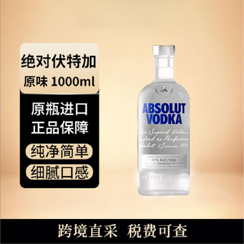 ABSOLUT绝对伏特加酒原味1000ml瑞典进口洋酒基酒调酒专用官旗正
