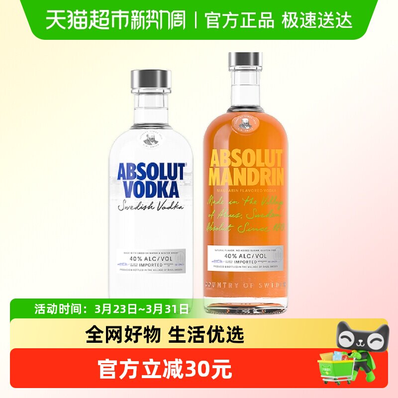 Absolut/绝对伏特加原味柑橘味组合装500ml+700ml洋酒烈酒鸡尾酒
