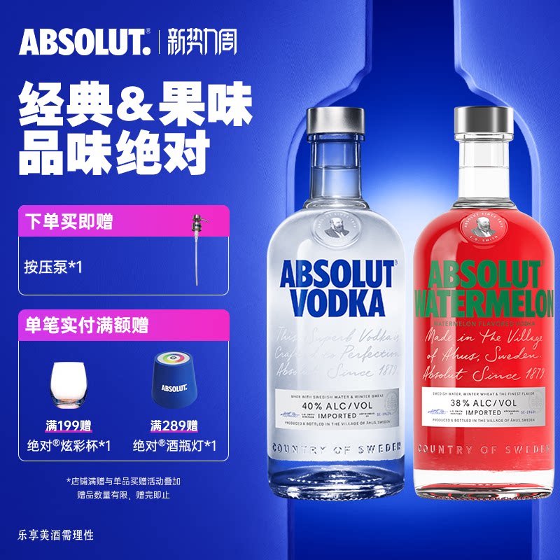ABSOLUT绝对伏特加酒原味700ml西瓜味700ml瑞典进口洋酒调酒基酒
