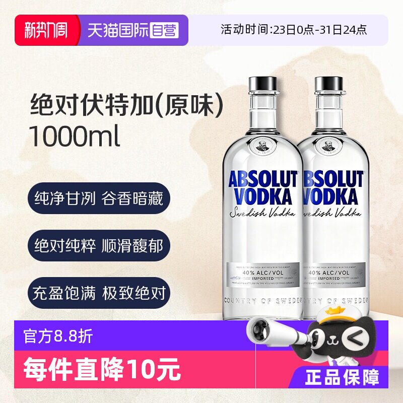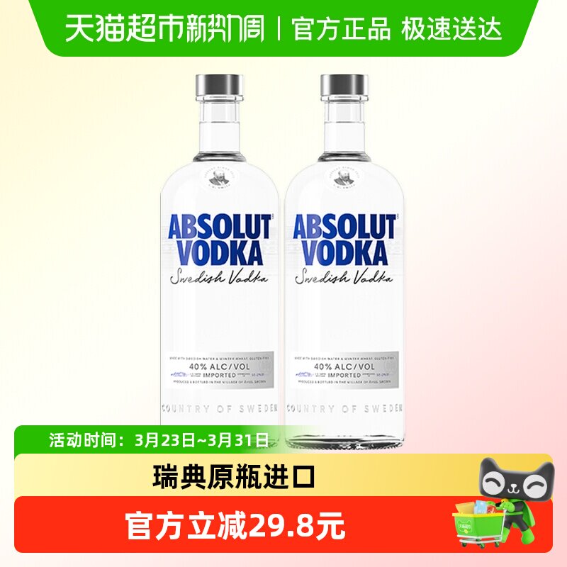 绝对伏特加经典原味原装进口洋酒基酒配制酒1000ml 双支装