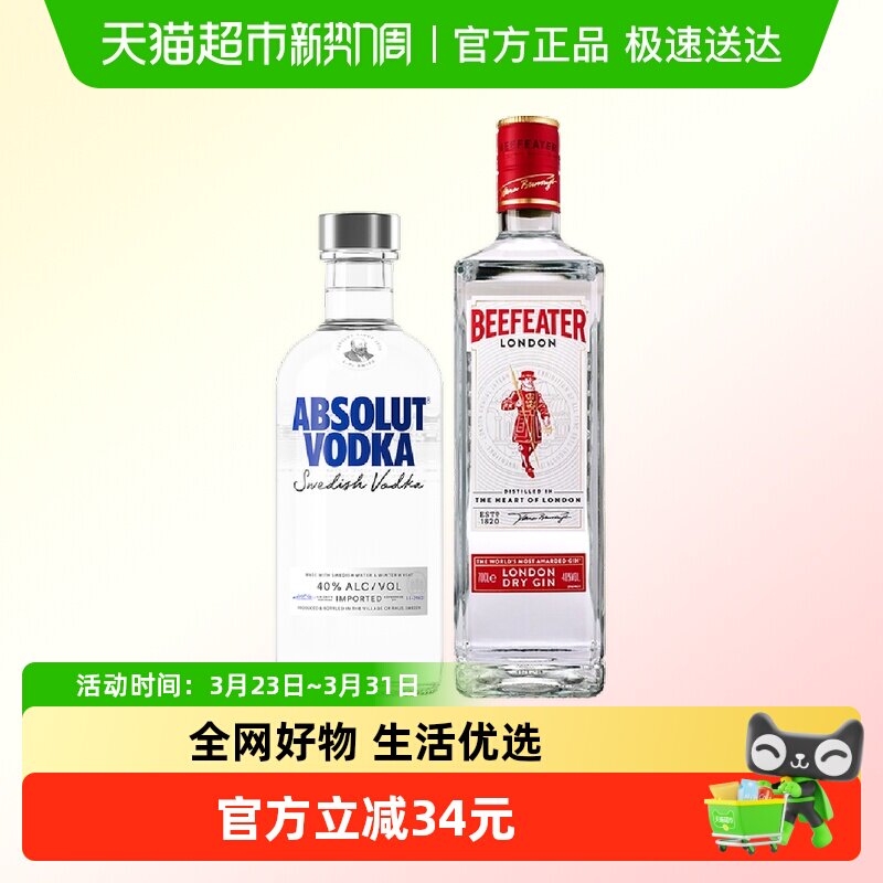 绝对伏特加原味必富达金酒组合500ml+700ml进口洋酒鸡尾酒特调