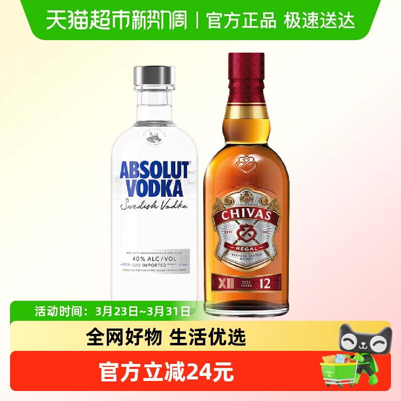 绝对伏特加原味芝华士12年威士忌500ml*2组合装洋酒鸡尾酒特调