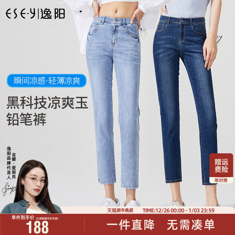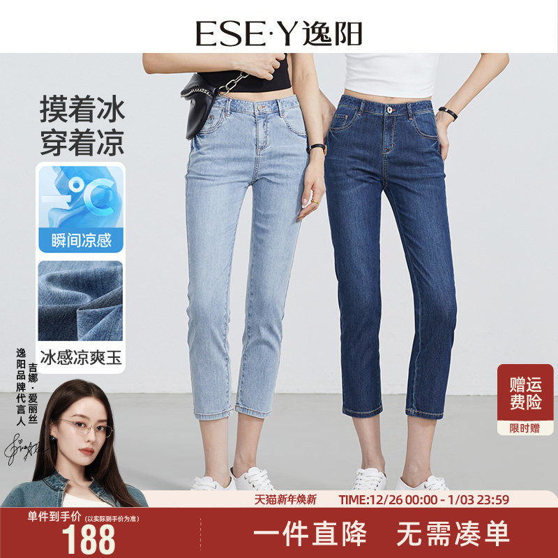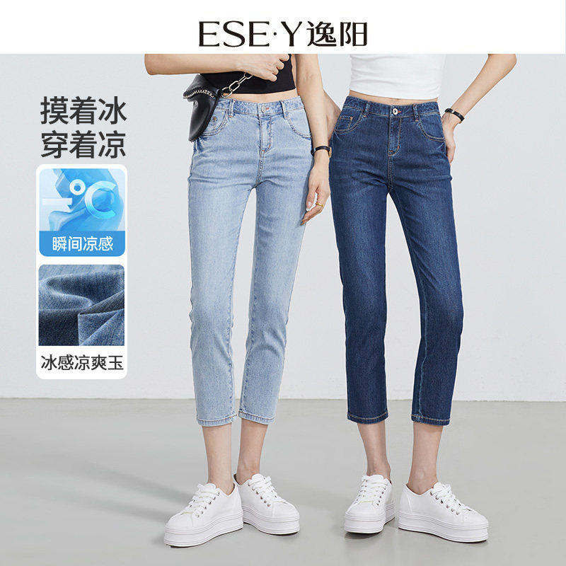 逸阳修身八分牛仔小脚裤女2025夏季薄款凉爽百搭大码九分铅笔裤子