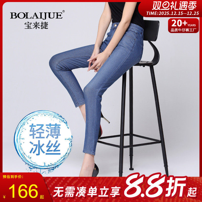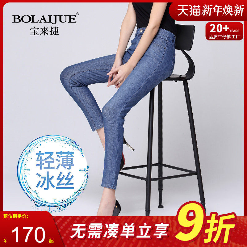 宝来捷冰丝牛仔裤女夏款九分裤弹力夏季高腰紧身小脚超薄天丝薄款
