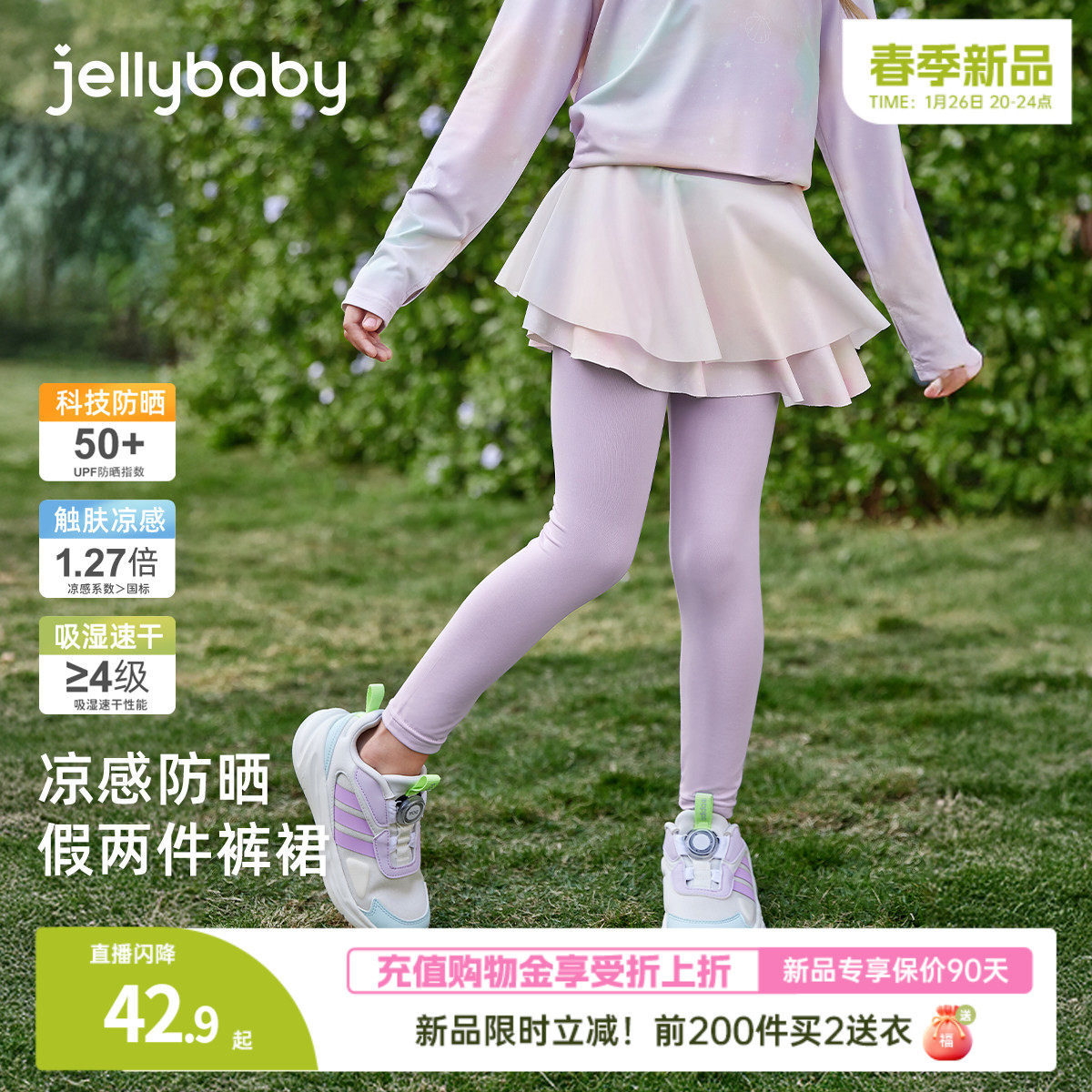 [春季新品]儿童裙裤女童速干防晒假两件裤春季户外运动裤宝宝裤子