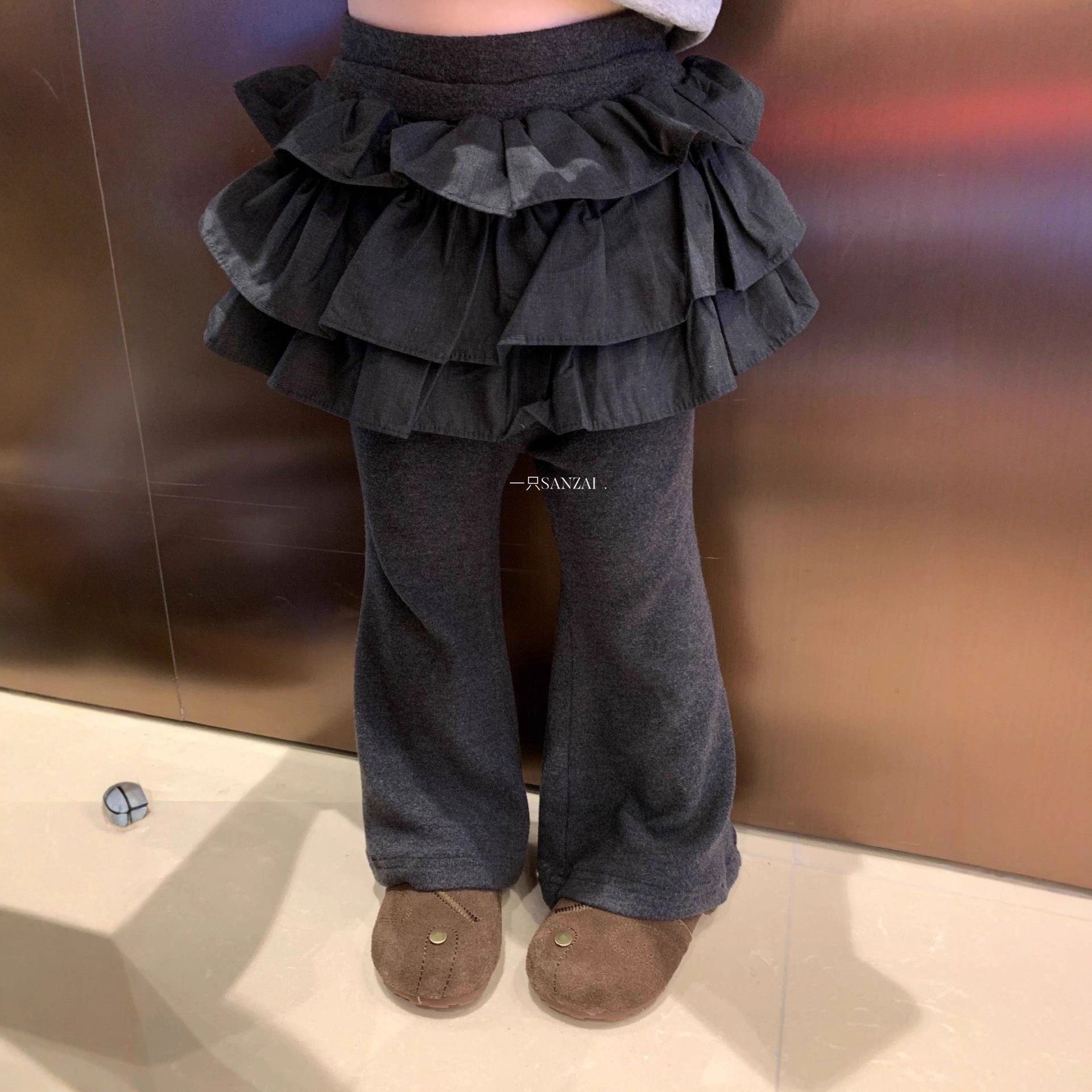 Spring韩国童装2024冬季宝宝款假两件毛毛加绒保暖裙裤女童打底裤