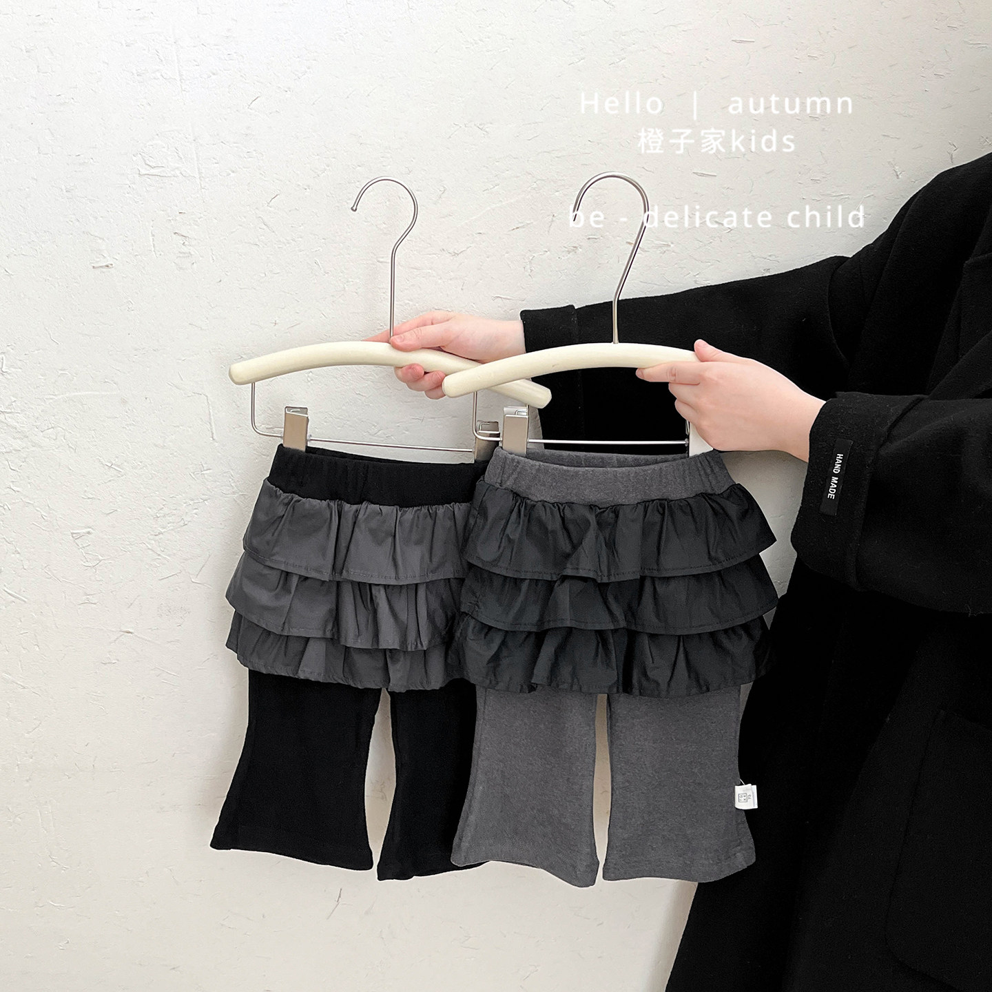Spring韩国童装2025年秋季新款亲子拼接抽绳百褶裙裤女童半身裙子