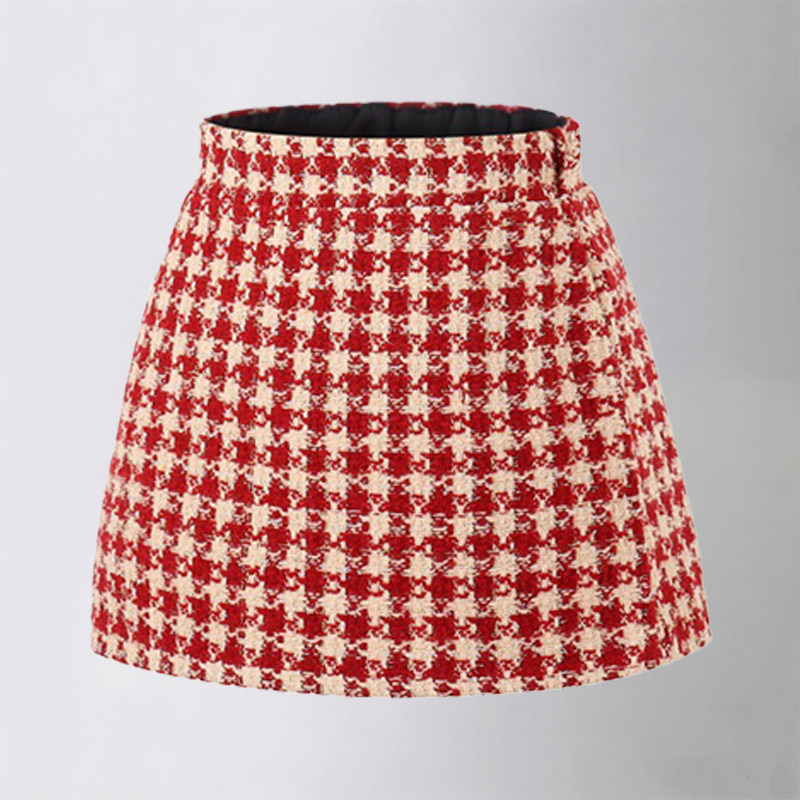 儿童短裙红色小香风半身裙秋冬加绒新年服包臀裙裤女童a字裙格子