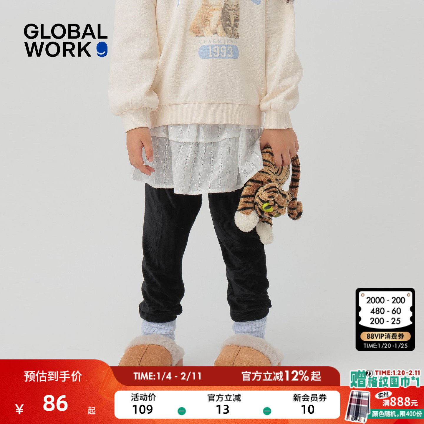 GLOBAL WORK 裙裤女童2026春季新款甜美设计感花边裙裤子604689