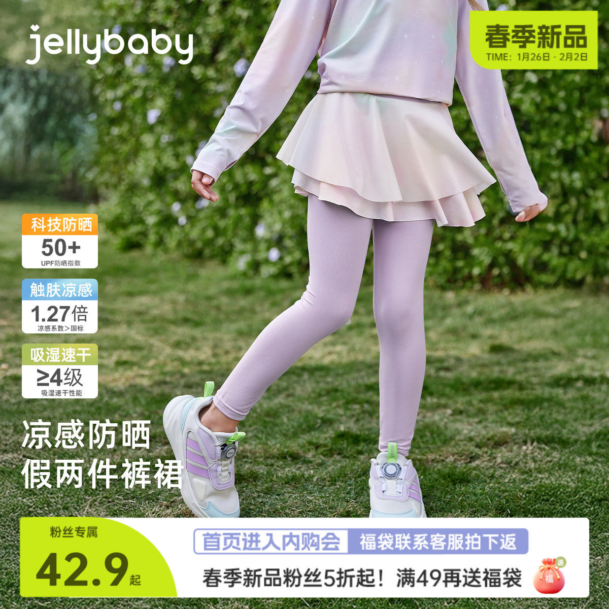 jollybean丨百褶网球裙半身裙裤女童25新款防走光防晒运动短裙