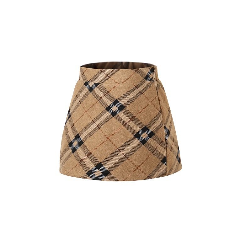 E7085日单新款时髦格子儿童毛呢裙裤女童秋冬靴裤短裤阔腿裤