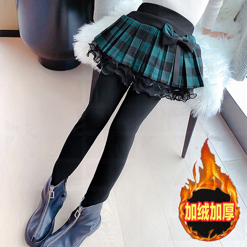 女童加绒裙裤秋冬装新款儿童加厚假两件裤裙外穿中大童丝绒打底裤