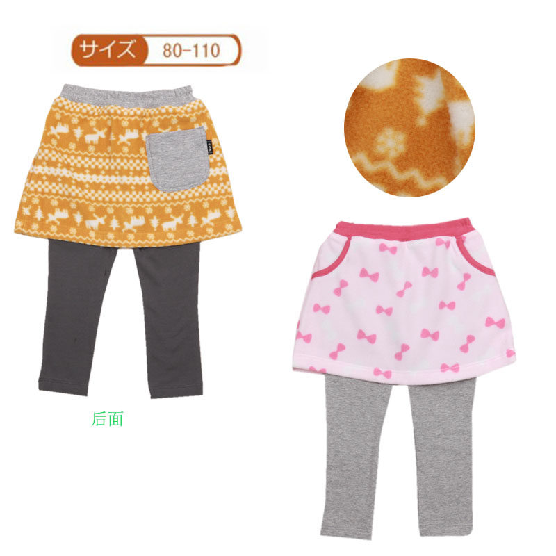 日单千趣男童春秋冬新款柔软保暖裙裤女童摇粒绒假两件打底长裙裤