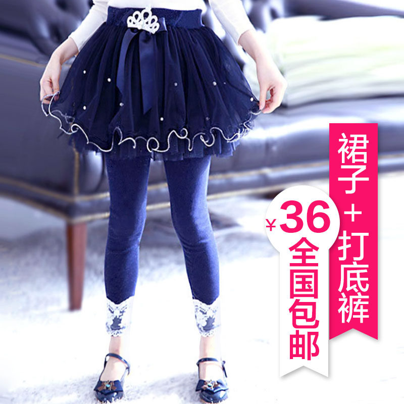 童装春秋新款裙裤女童韩版网纱裙纯棉打底裤宝宝修身时尚特价长裤