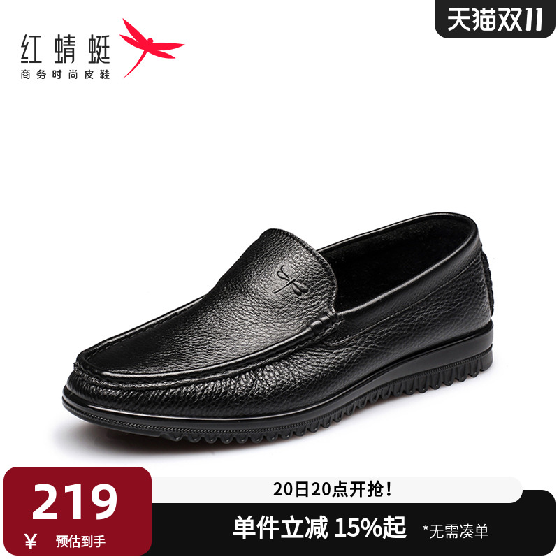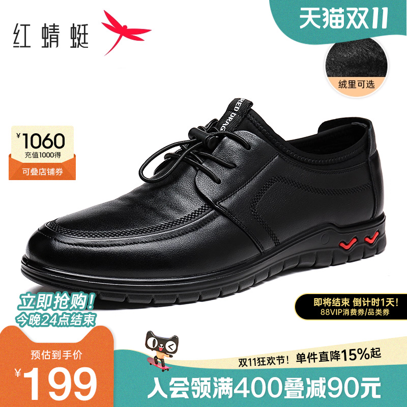 红蜻蜓皮鞋男 春秋新款真皮正品男士休闲鞋 商务牛皮男鞋男式鞋子