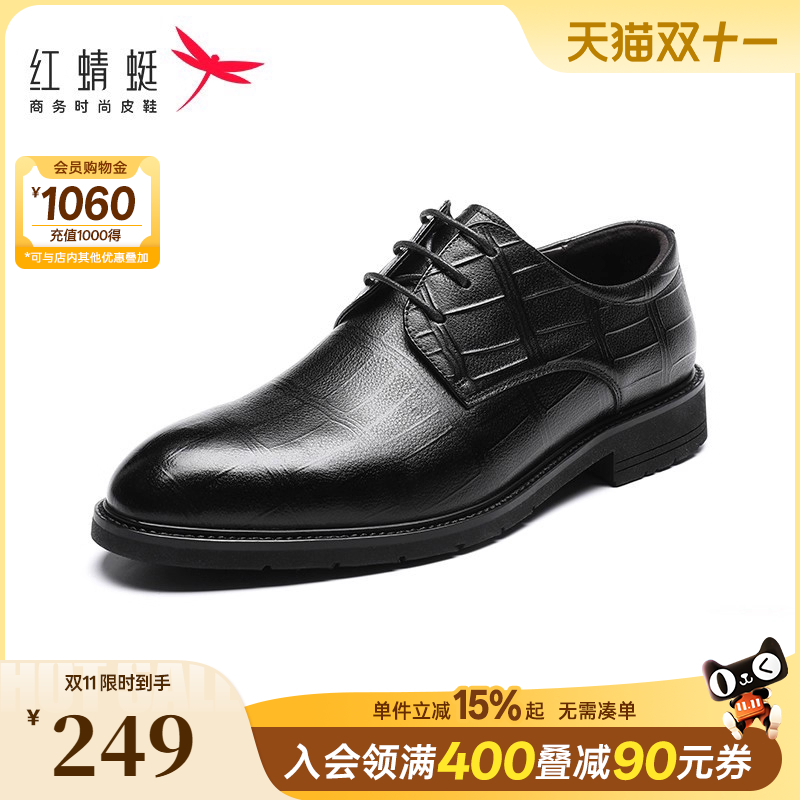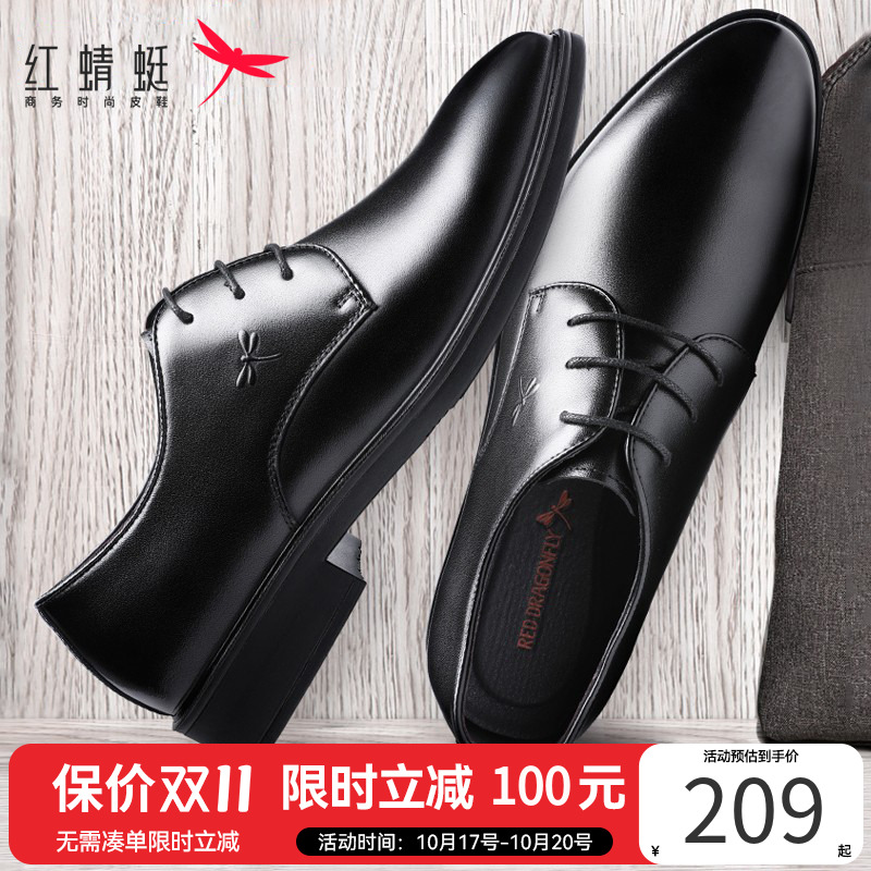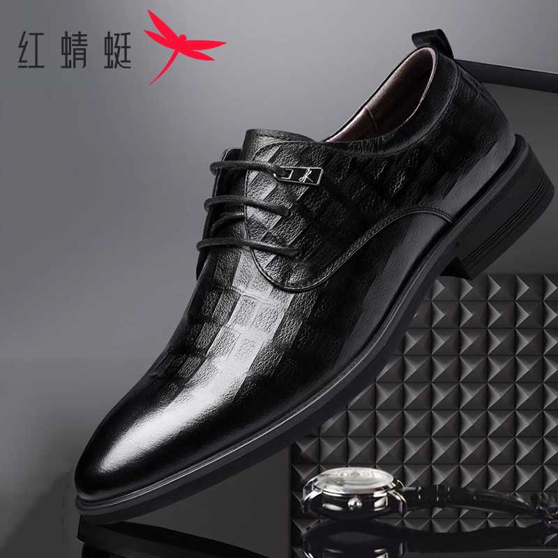 红蜻蜓皮鞋男春秋新款男鞋真皮男士高端商务皮鞋英伦正装皮鞋婚鞋