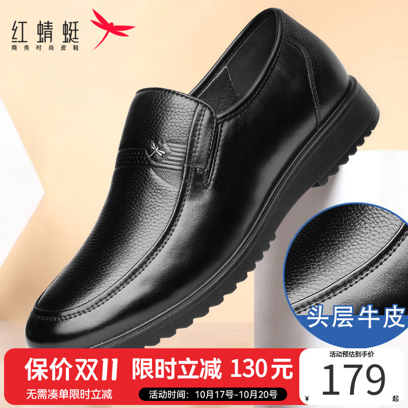 红蜻蜓皮鞋男春秋季2025真皮男士商务中老年新款休闲软底爸爸鞋子