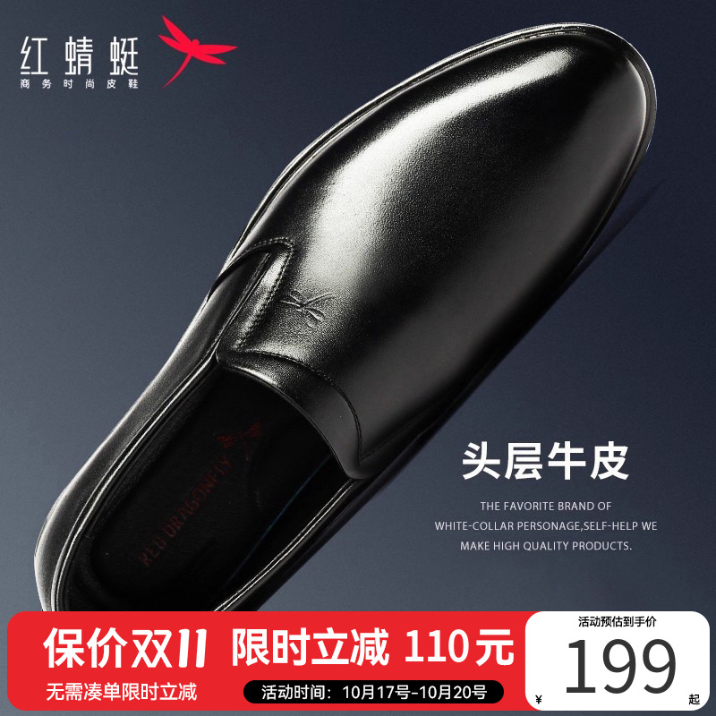 红蜻蜓皮鞋男春秋新款一脚蹬商务休闲皮鞋透气简约软底舒适男单鞋