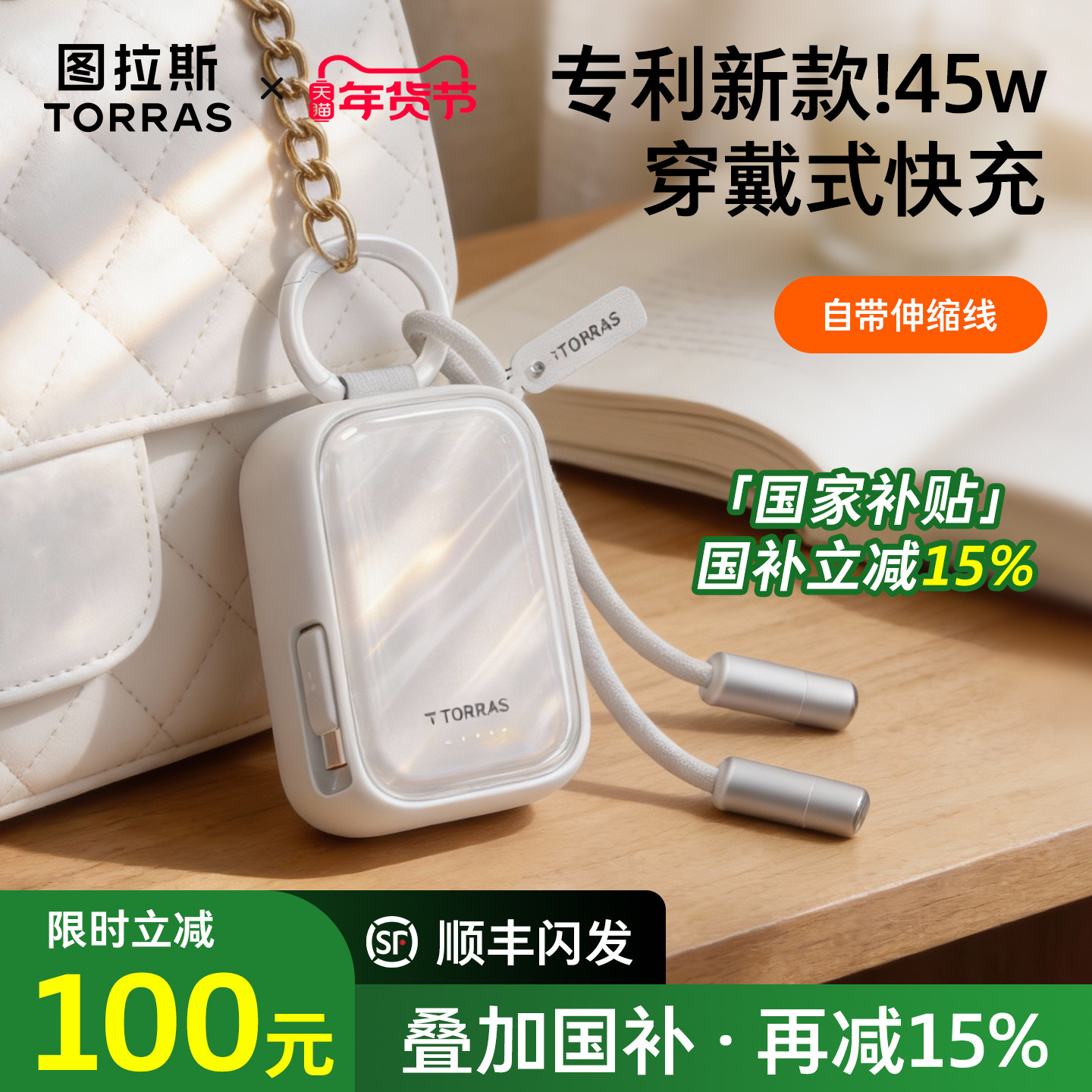 【充电宝3c认证可上飞机】图拉斯2026新款快充大容量20000毫安自带线小巧便携适用苹果17手机45W移动电源正品