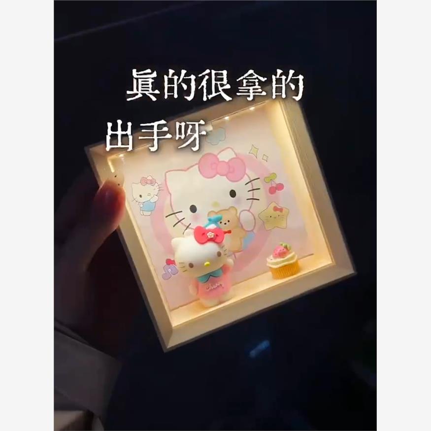 卡通猫相框小夜灯摆件纪念日情人节七夕礼物送女朋友创意可爱装饰