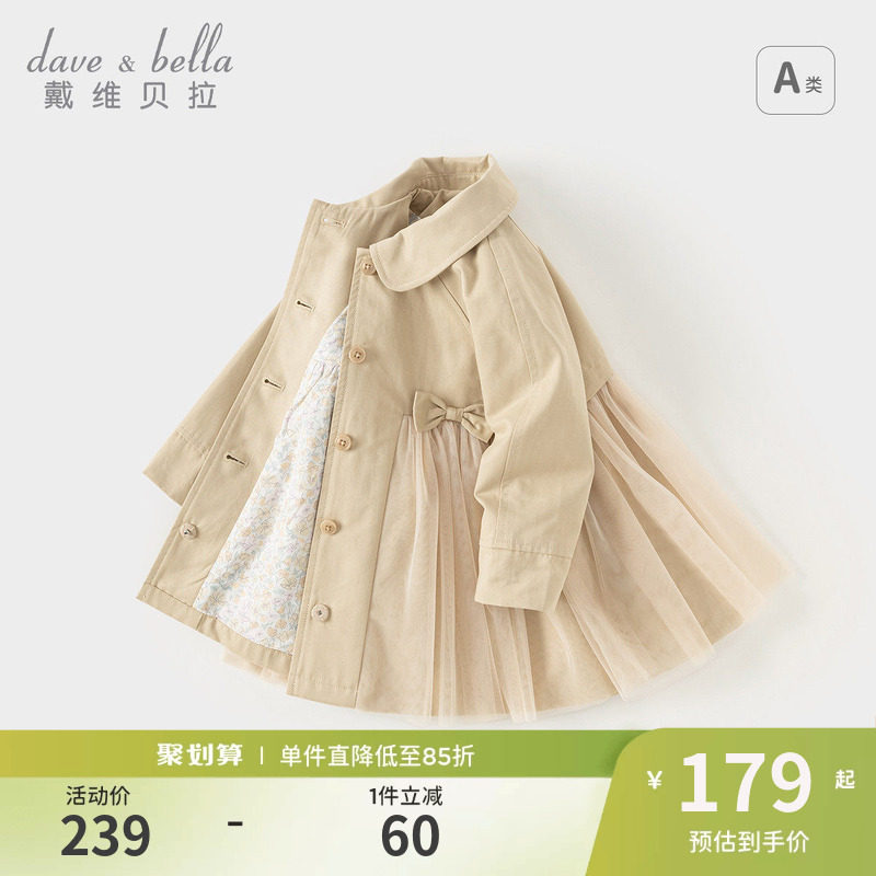戴维贝拉女童风衣2026春装新款儿童英伦风外套女宝网纱洋气衣服