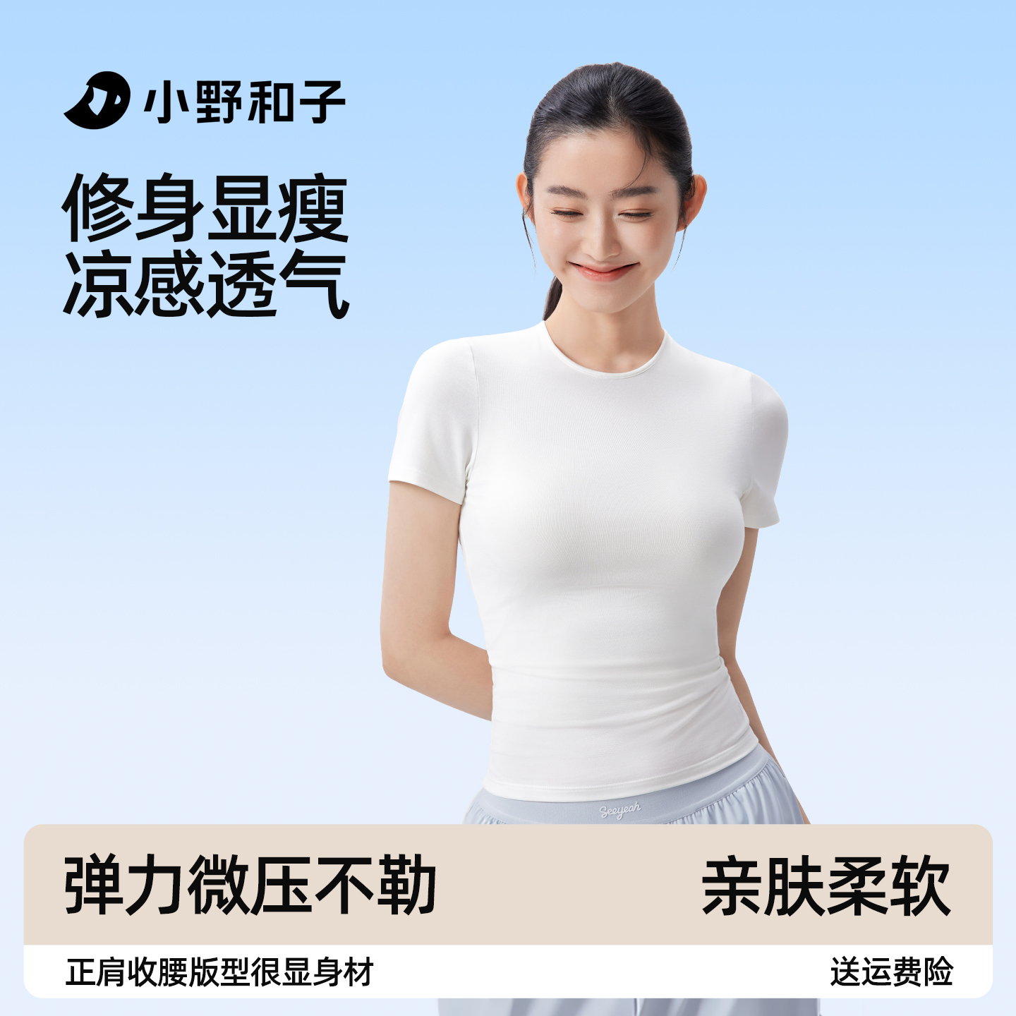 小野和子修身t恤女白色紧身短袖2025新款夏正肩打底上衣遮肉显瘦