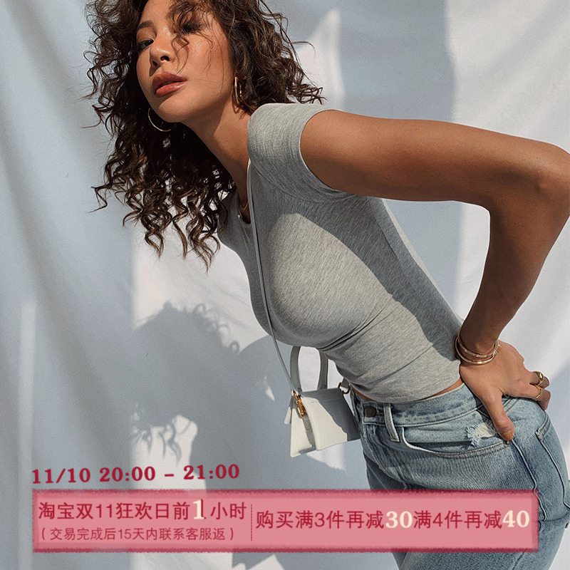 NAYA CHAN 白色正肩u领短袖t恤女夏日短款修身显瘦弹力紧身上衣