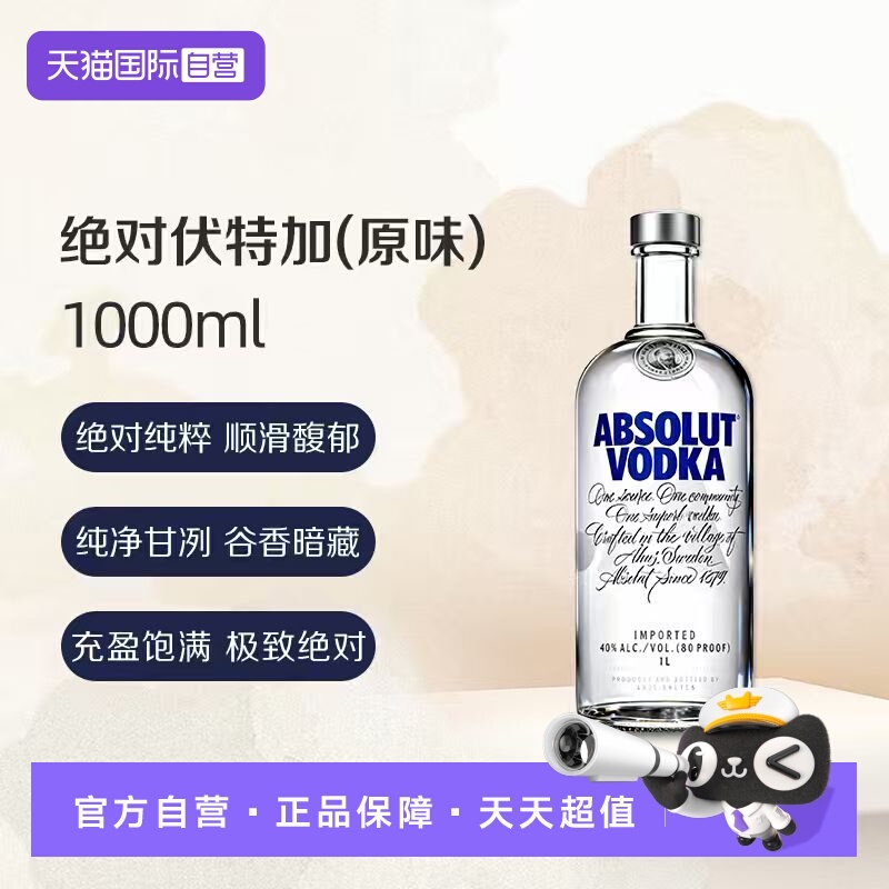 ABSOLUT绝对伏特加酒原味1000ml瑞典进口洋酒基酒调酒专用官旗正
