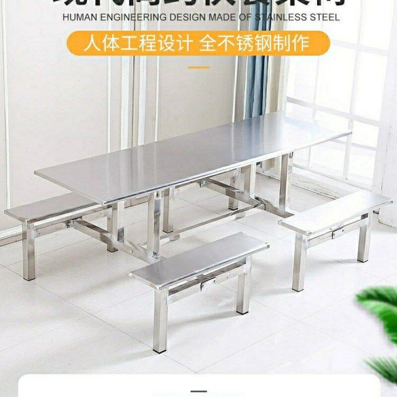 食堂餐桌椅学校学生员工厂6人8人连体快餐桌椅组合不锈钢餐桌圆形