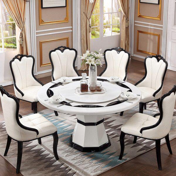 欧式餐桌圆桌会所椅欧式圆形大理石6人家用饭桌轻奢组合一桌六椅