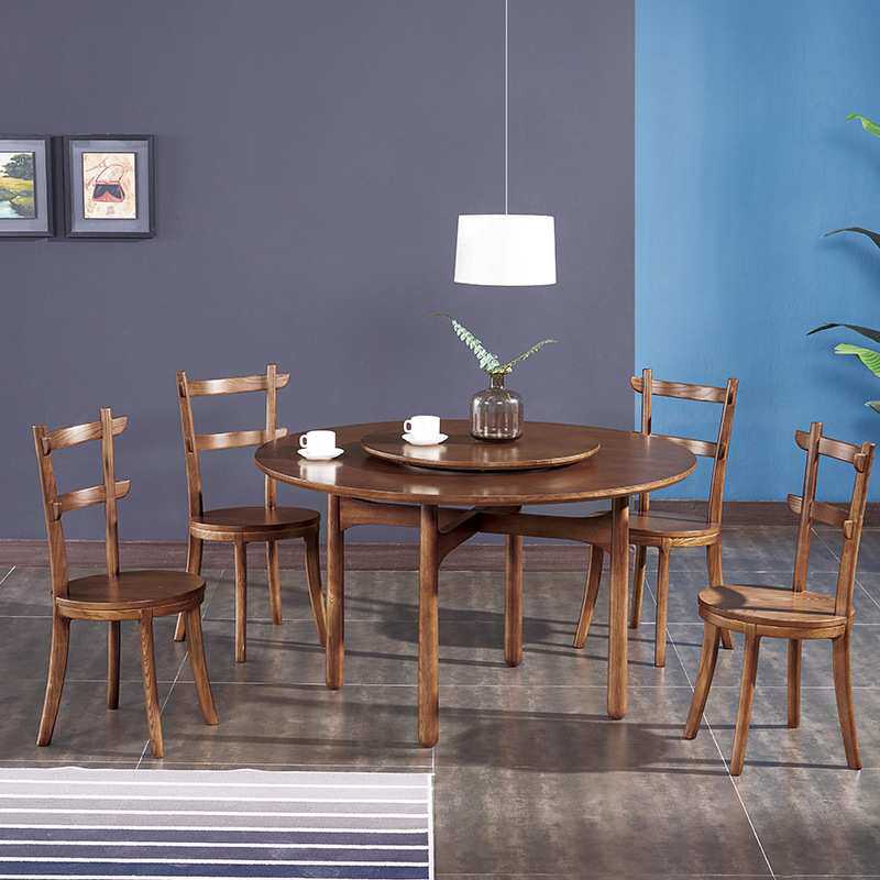 实木圆形餐桌椅组合白蜡圆桌餐桌木盘6人用168006简约现带代吃饭