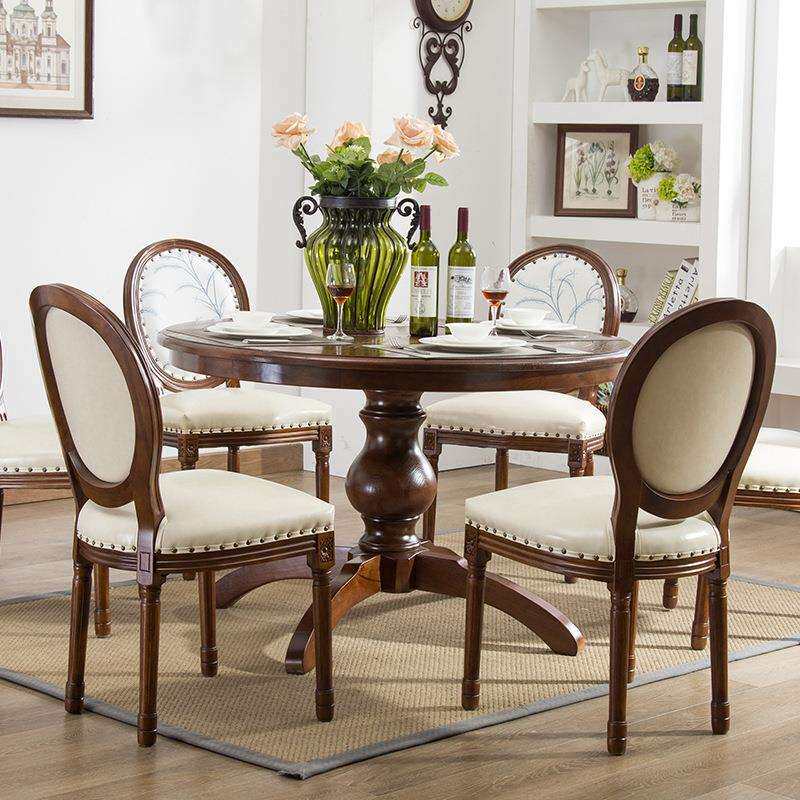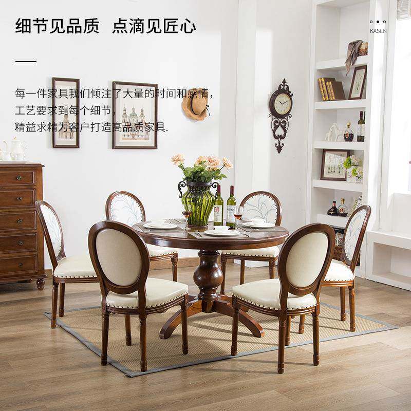 美式实木餐桌椅组合大小户型简约餐厅4人6人圆桌家用吃饭圆形桌子