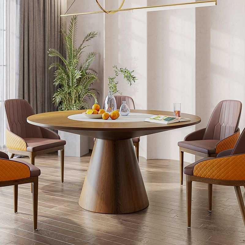 北欧圆形餐桌椅组合现代简约实木圆餐桌家用带嵌入式转盘6人圆桌